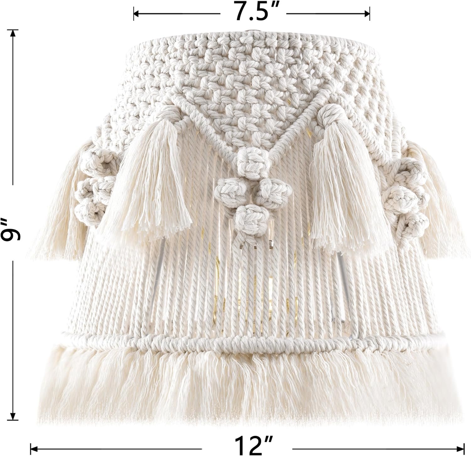 - Shade Dimension:7.5 inch top diameter,12 inch bottom diameter, 11 inch tall; 0.4 inch spider diameter.Please check the shade size carefully to make sure they are suitable for your light fixtures before purchasing.