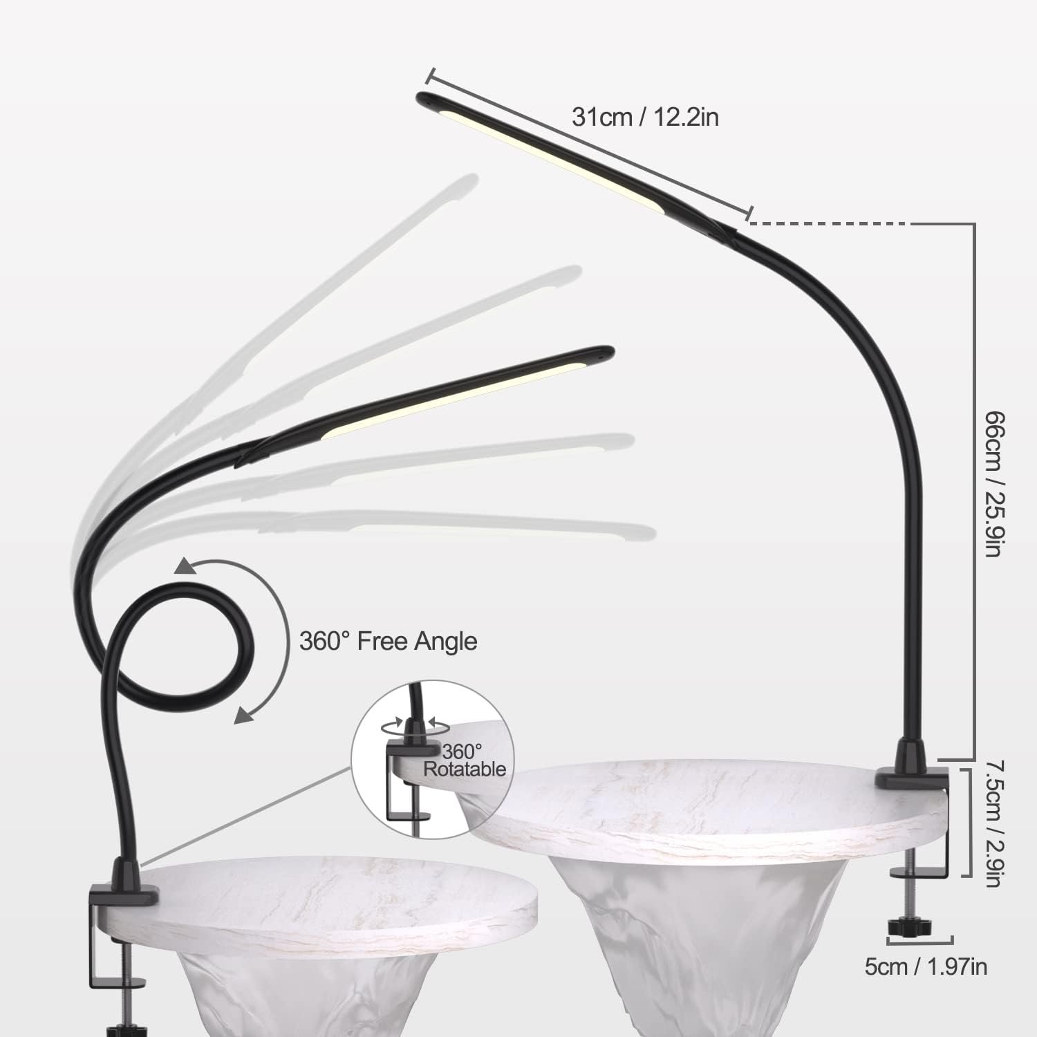 - 【Long Swing Arm Desk Lamp】Clip on light and 360°swivel base, flexible to adjust light angle. Extensive 66cm/25.9in long reach easily lights up every corner to satisfy your demands.