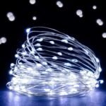 - 🎅【Flexible & Bendable】: Made of 33ft long ultra thin sliver coated copper wire, the led fairy lights are flexible and bendable. You could easily bend it to any shapes you like or tangle it on anything you want like plants, mason jars, Christmas trees,etc.
