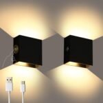 - RECHARGEABLE WALL SCONCE – Built-in 3000mAh battery. It will take 2.5 hours to be fully charged, which could make the light work for 18hous(high brightness)/50hours(low brightness). 2.6ft USB cord included in the package.