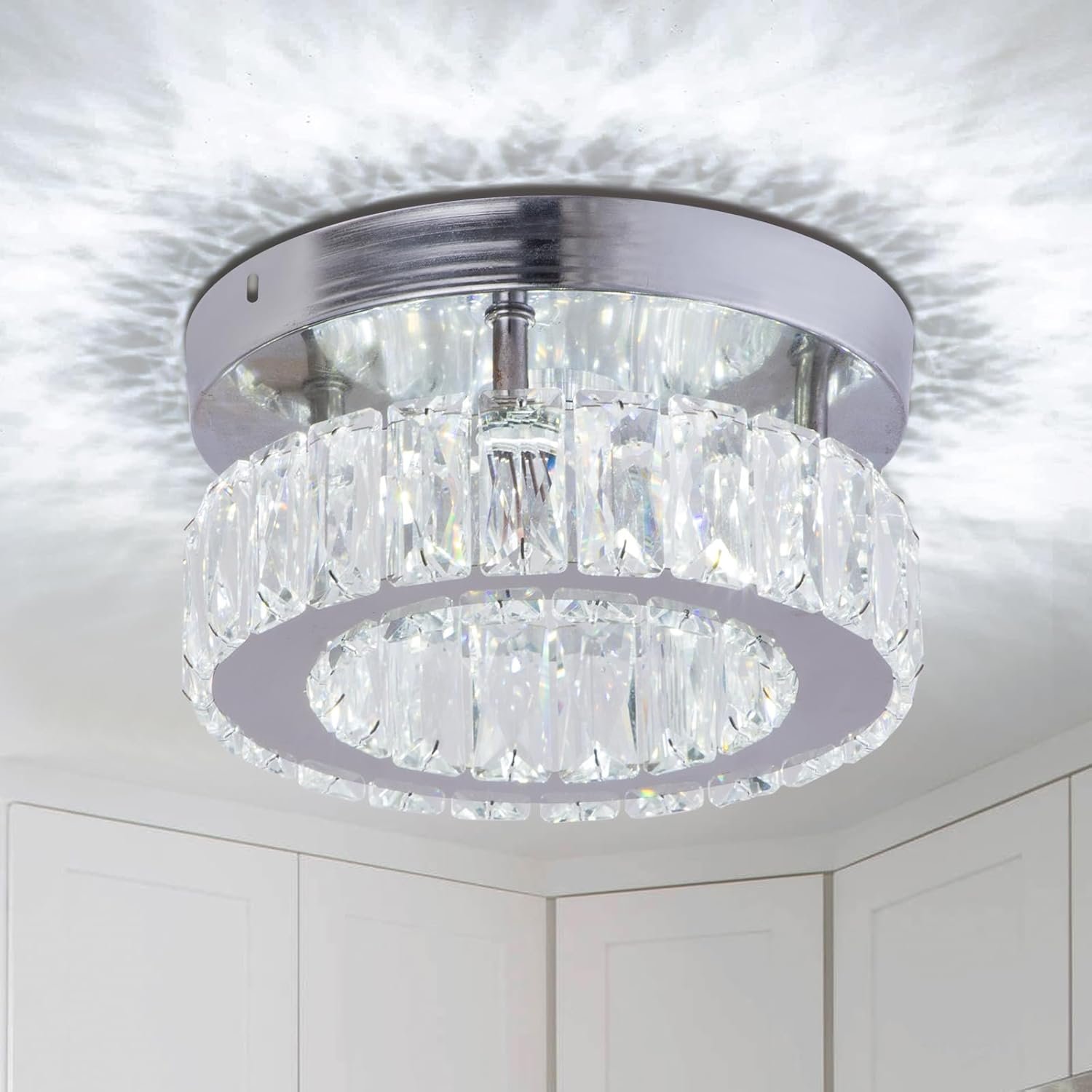 - LED Energy Saving:The crystal ceiling light adopts LED light source, which has excellent energy-saving effect. LED technology can provide bright and uniform lighting while consuming less energy. LED light source is up to 70% energy-saving than incandescent lamps.