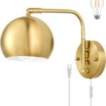 - High Quality and Elegant Design and Safe: Brushed Brass finished whole lamp body with unique design globe lampshade, modern and fashion style. The color of the lampshade inside is white, so light won’t be absorbed and will reflect brighter. Both plug-in cord and E26 light socket have passed UL listed.