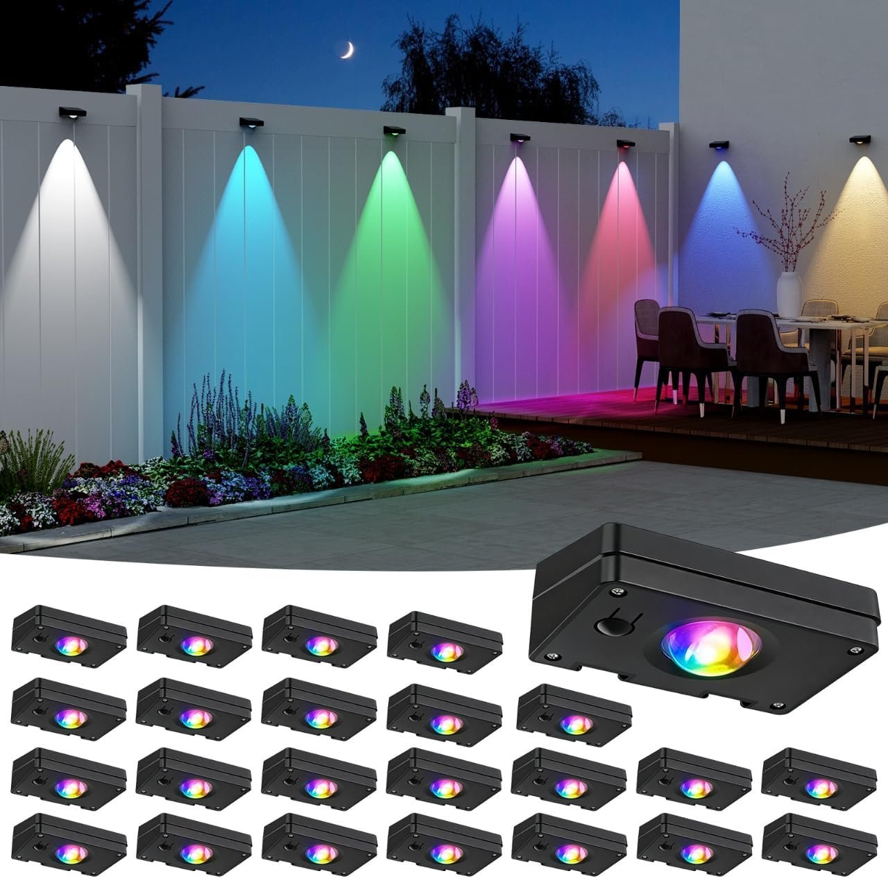 - 【Versatile Color Options】: Features 10 dynamic color modes, including Warm White, Cool White, and RGB. Customize the ambiance for any occasion to enhance your garden, patio, or backyard space.